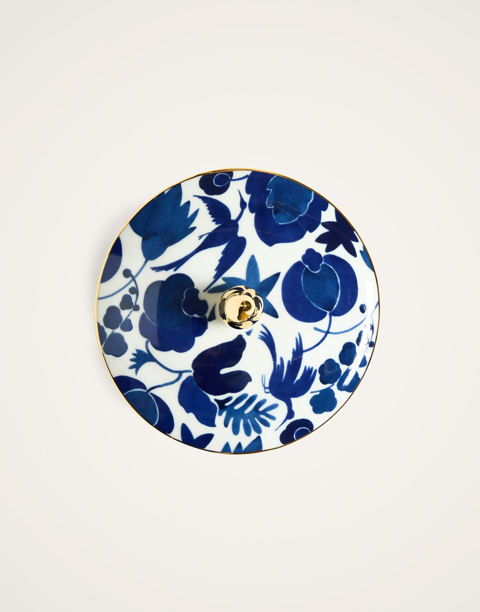 La DOUBLE J BLUE PORCELAIN WILDBIRD GOODIE JAR