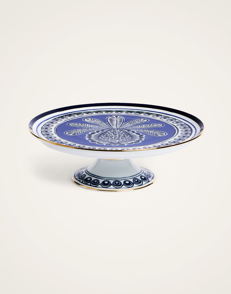 PORCELAIN PINEAPPLE BLUE CAKE STAND