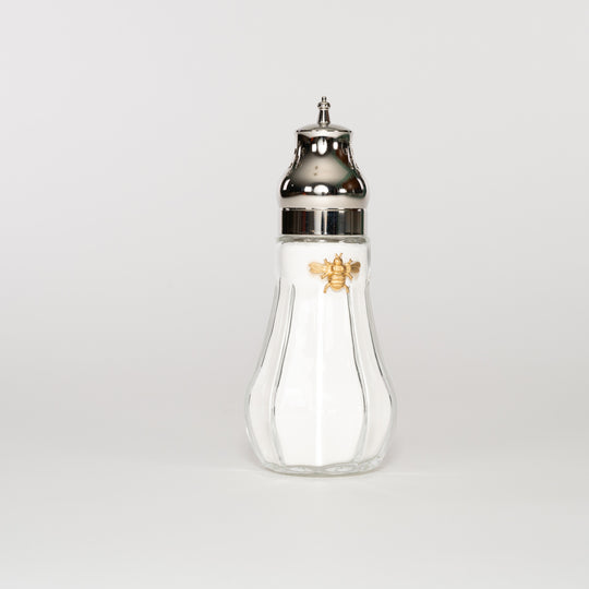 Royal Extract Dusting Silk Body Powder delicately scents, soothes, and softens skin. Unique to Lady Primrose, our iconic dusting silk shaker's refined elegance is reminiscent of vintage English sugar shakers cascading powder with just a shake. Every shaker is adorned with our hand-applied Royal Extract golden honey bee.