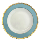 This classic turquoise plate has a beautiful scalloped edge and 22 carat gold feathering with a hand painted edge. The original antique shape was produced by the Royal Worcester Manufacture for the Duke of Gloucester, an honorific title given to the younger brother, William Henry, of King George III of England.
