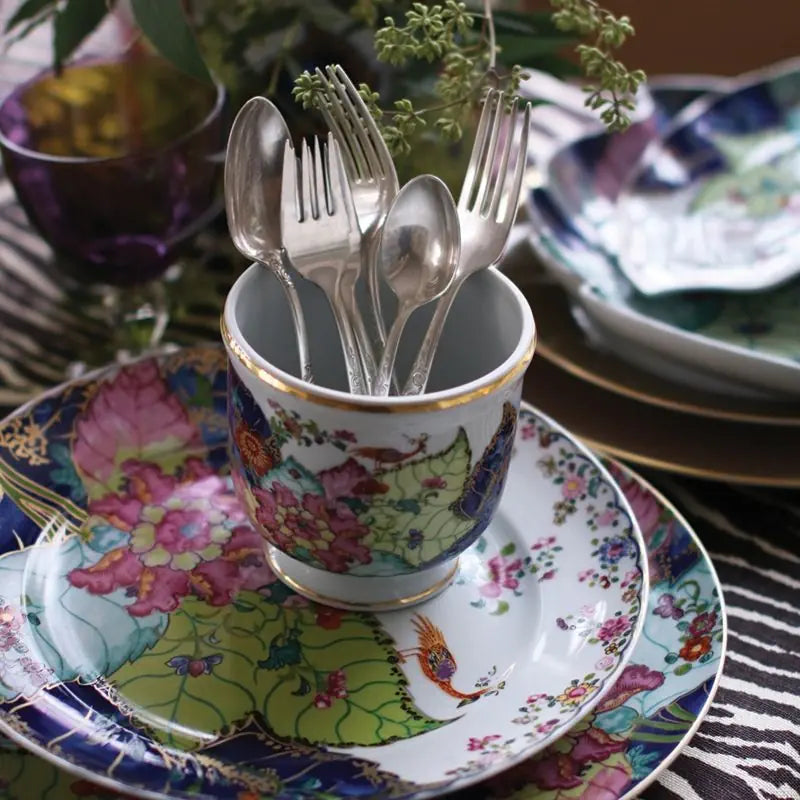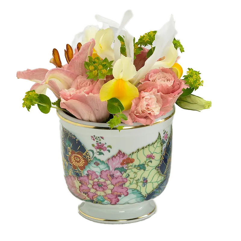 The "Tobacco Leaf" cachepot from Mottahedeh is a small decorative container suitable for holding a single plant or flowers. It serves as a lovely accent piece for your home decor. The cachepot has a diameter of 4.5 inches, making it a compact option for displaying your plants or floral arrangements. It's a part of the "Tobacco Leaf" collection by Mottahedeh, known for its elegant and intricate design featuring tobacco leaves. This cachepot can be used to enhance the aesthetic appeal of your indoor or outdoor spaces.