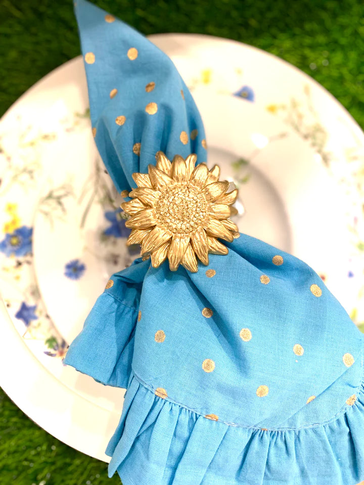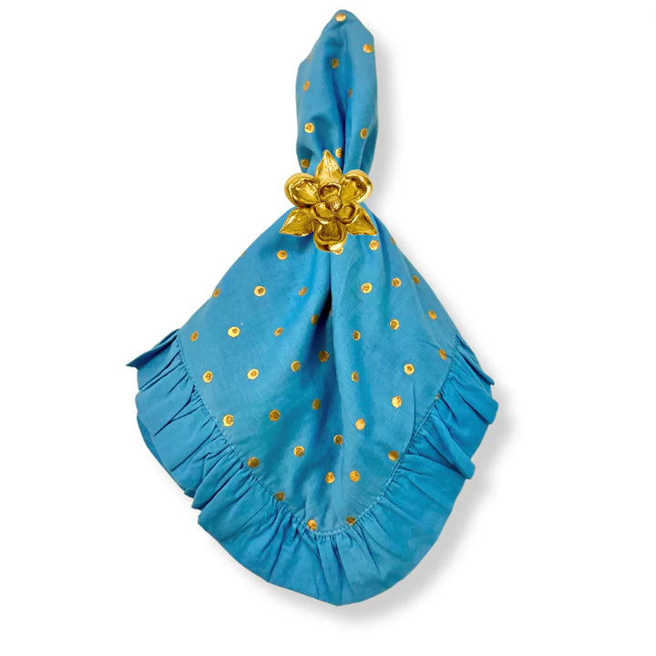 Hand block metallic print cotton napkin. Boxed set of 4.