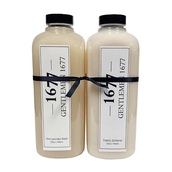 Discover the lasting elegance of 1677 with the Lady Primrose 1677 Laundry Set, designed to deliver clean, softly fragranced fabrics with every wash. This set includes a concentrated 32 oz Laundry Wash that effectively cleans and refreshes textiles. The 32 oz Fabric Softener helps minimize wrinkles and static, leaving fabrics soft and subtly infused with the signature 1677 scent. Perfect for your daily laundry needs.