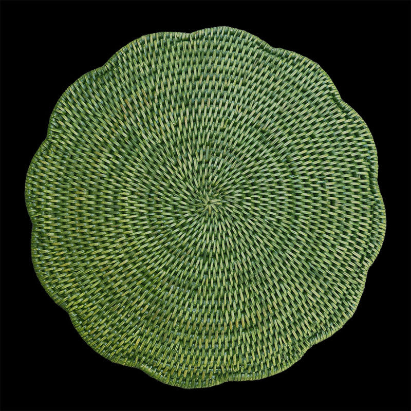 Round green rattan placemat, meticulously woven to bring a natural and elegant touch to your table. Its refined design is perfect for all occasions, adding charm to your daily and festive meals.