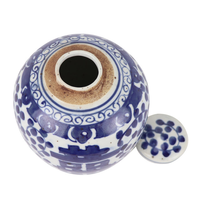 The Legend Accents Blue and White Tiny Lid Mini Jar is a beautifully crafted porcelain piece that brings together elegance, tradition, and cultural symbolism. Each jar is carefully hand-painted, featuring the iconic Double Happiness motif surrounded by delicate dotted accents, representing joy, love, and prosperity. Its classic blue-and-white palette pays homage to traditional Chinese porcelain artistry, while the playful dot pattern adds a contemporary touch that complements a variety of décor styles.