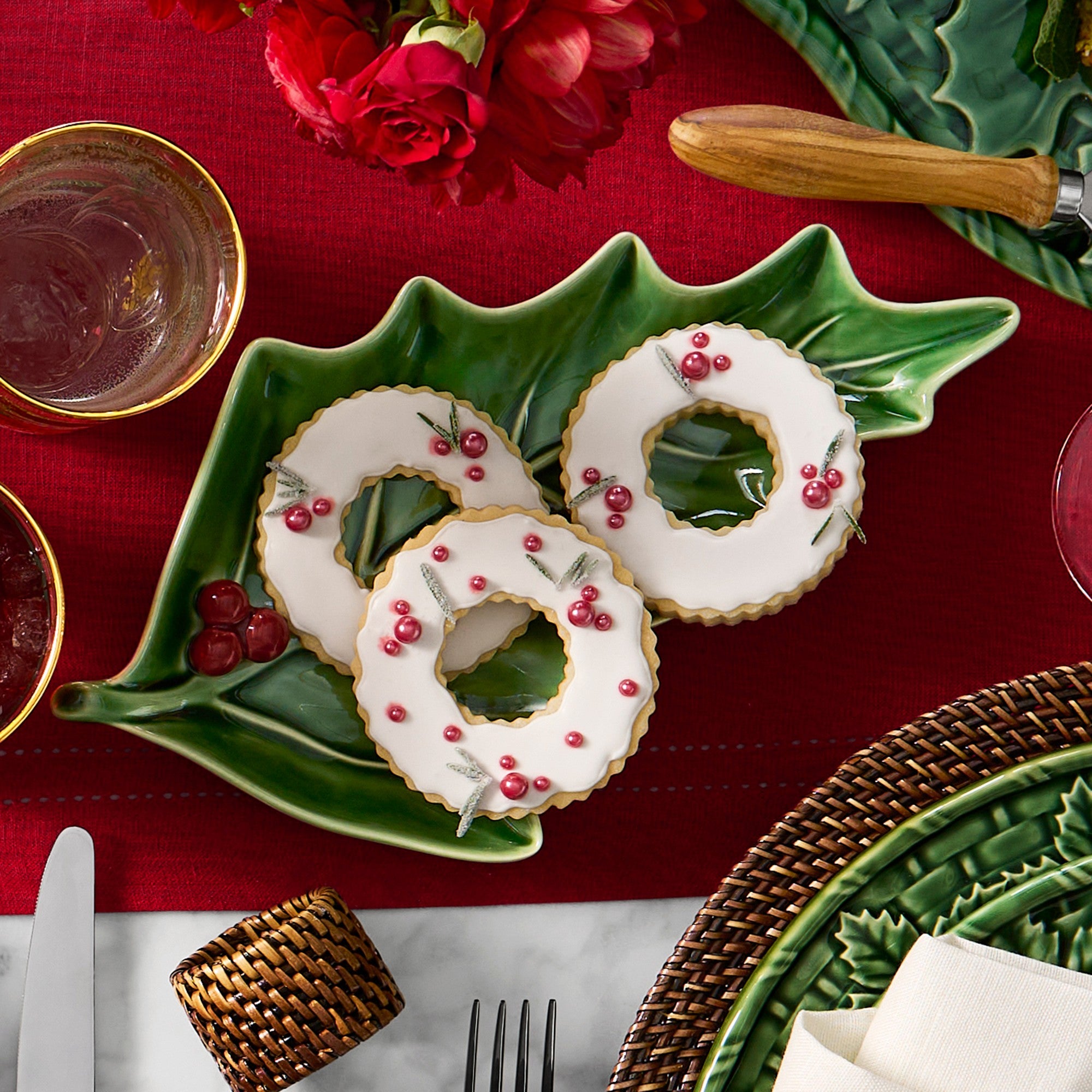 Celebrate the artistry of Portuguese ceramics with this hand-painted earthenware tray from Bordallo Pinheiro. The Holly pattern draws inspiration from naturalist design traditions, offering timeless elegance perfect for holiday gatherings and year-round entertaining. Produced at the brand's renowned Portuguese factory, this piece combines authentic craftsmanship with modern convenience—both dishwasher and microwave safe for effortless care and everyday versatility.
