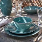 Available in cloud white, dove grey, forest green, paprika, and turquoise, this collection adds a joyful touch to your table setting. The cloud white set is particularly versatile, complementing other pieces available in these colors. Due to its handcrafted nature, each piece will be slightly unique.