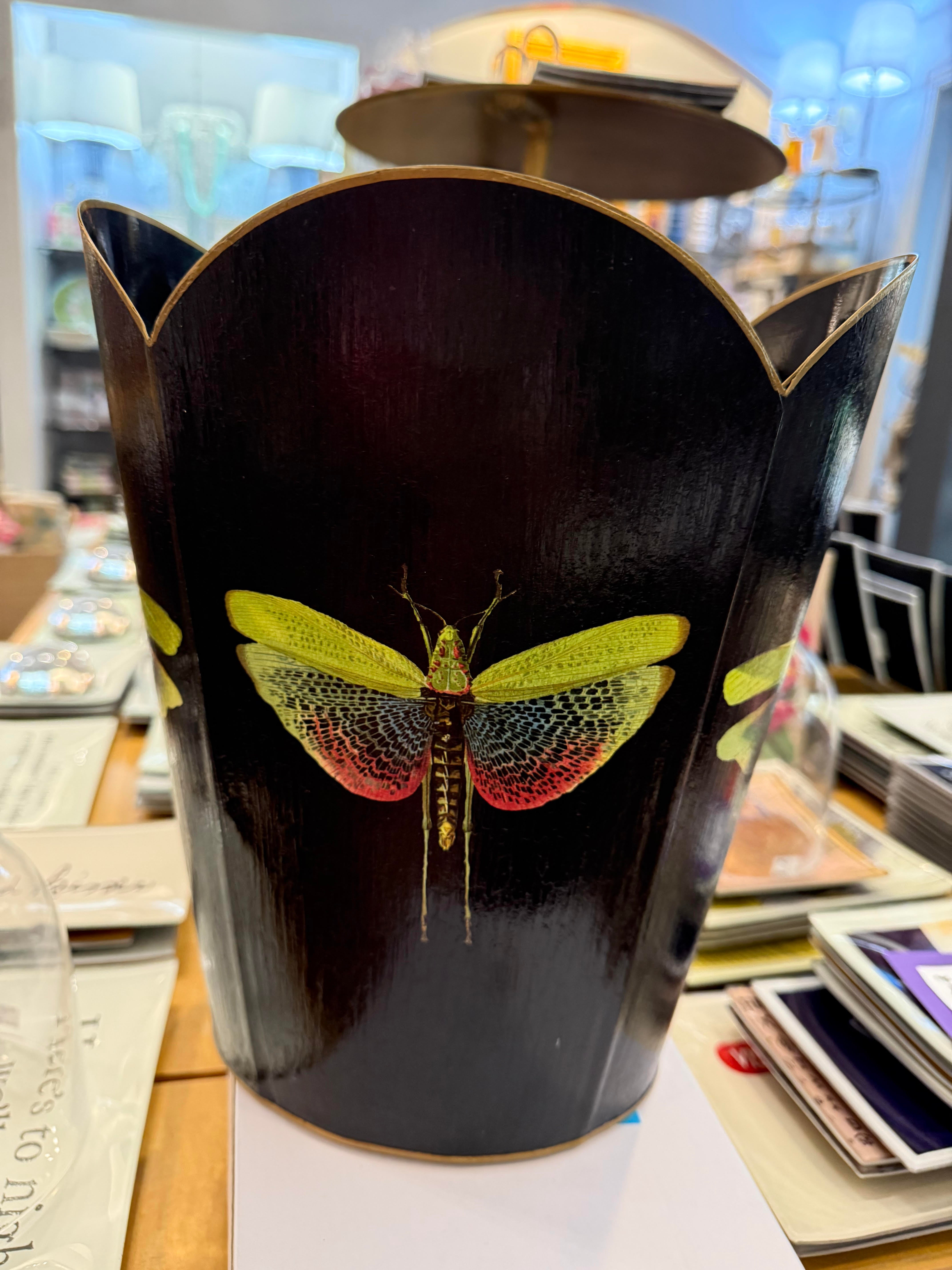 DRAGONFLIES ON BLACK WASTEPAPER BASKET