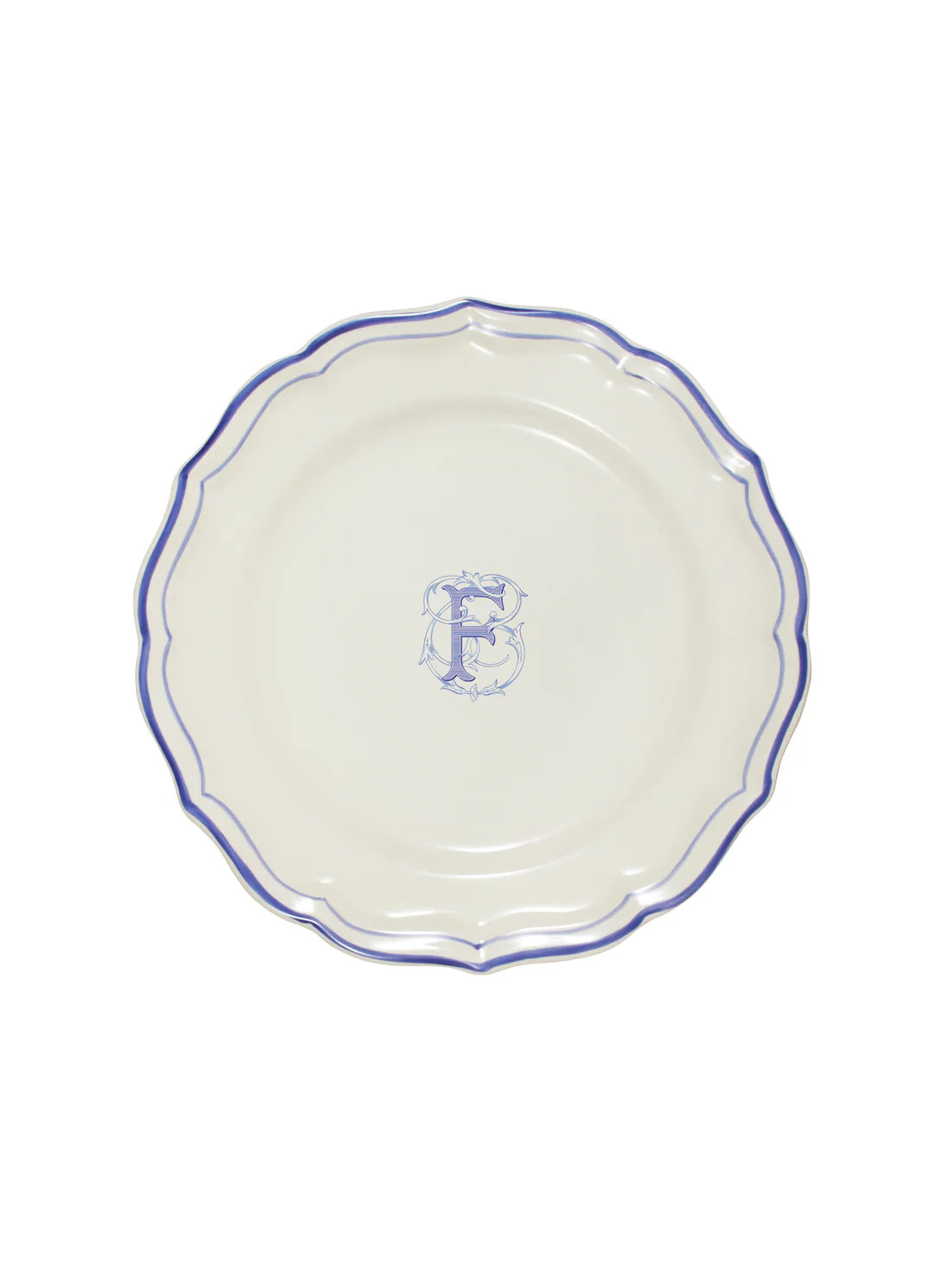 Handcrafted in Gien, France, this scalloped dinner plate features a timeless French blue trim that brings understated elegance to any table. The hand-painted ceramic design balances rustic countryside charm with refined sophistication, making it equally at home at casual gatherings or formal dinners. Its versatile aesthetic pairs beautifully with other Gien patterns, allowing you to build a personalized dinnerware collection.