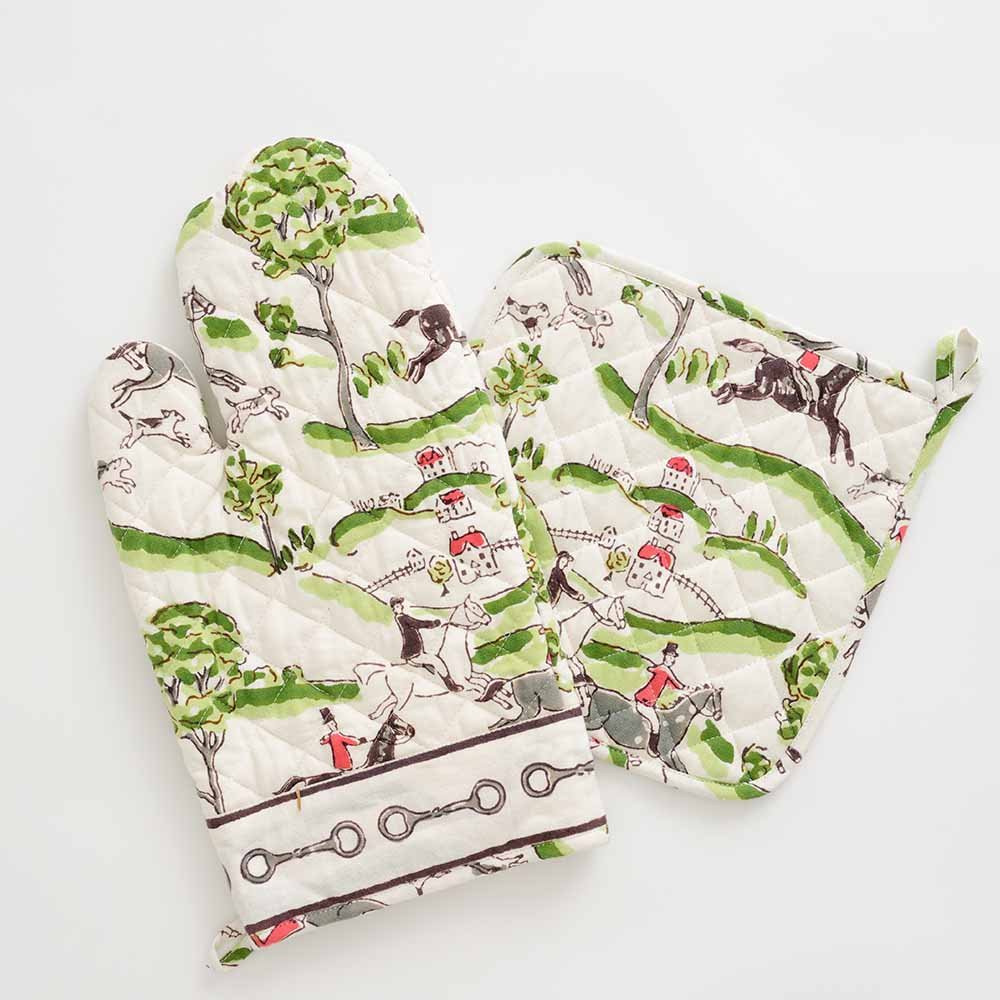 Pomegranate HUNT SCENE OVEN MITT SET