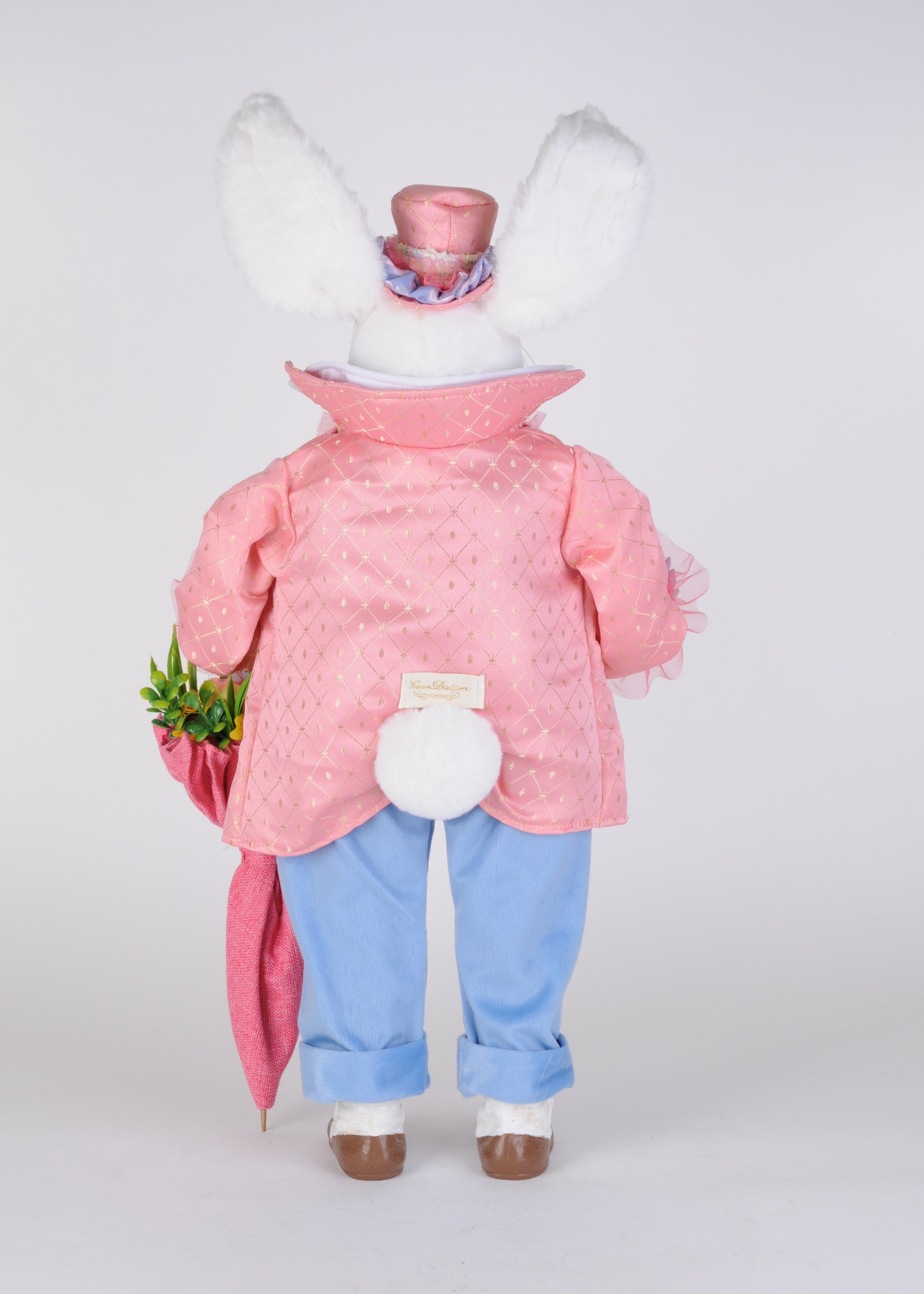 Bring refined charm and springtime elegance to your décor with this distinguished spring bunny figurine, dressed in a polished pastel ensemble inspired by classic storybook style. This handsome bunny wears a tailored pink jacket accented with pearl-like buttons, gold trim, and delicate detailing, layered over a soft tweed-style vest and lavender cravat. Perfect for Easter displays, spring vignettes, mantels, or entryway décor, this elegant bunny figurine adds character, warmth, and timeless appeal to any space. A wonderful accent for collectors or anyone who appreciates beautifully detailed seasonal décor designed to be enjoyed year after year.