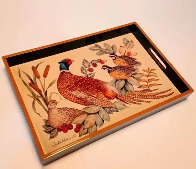 Julie Wear Pheasant and Quail Lacquer Tray 19 x 13"