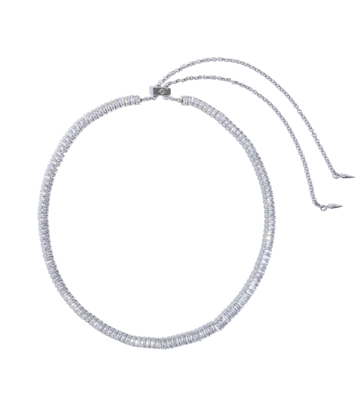 Our latest tennis necklace offering is our newest obsession for everyday sparkle: the Alice Tennis Slider Necklace. Baguette-cut crystals lend a heavy-handed shine that we’re always in favor of. For a clean, standalone strand or layered up with other Loren Hope classics, this super textural piece is a jewelry box staple. Our signature slider clasp is designed for easy on and off and allows you to wear it at any length.