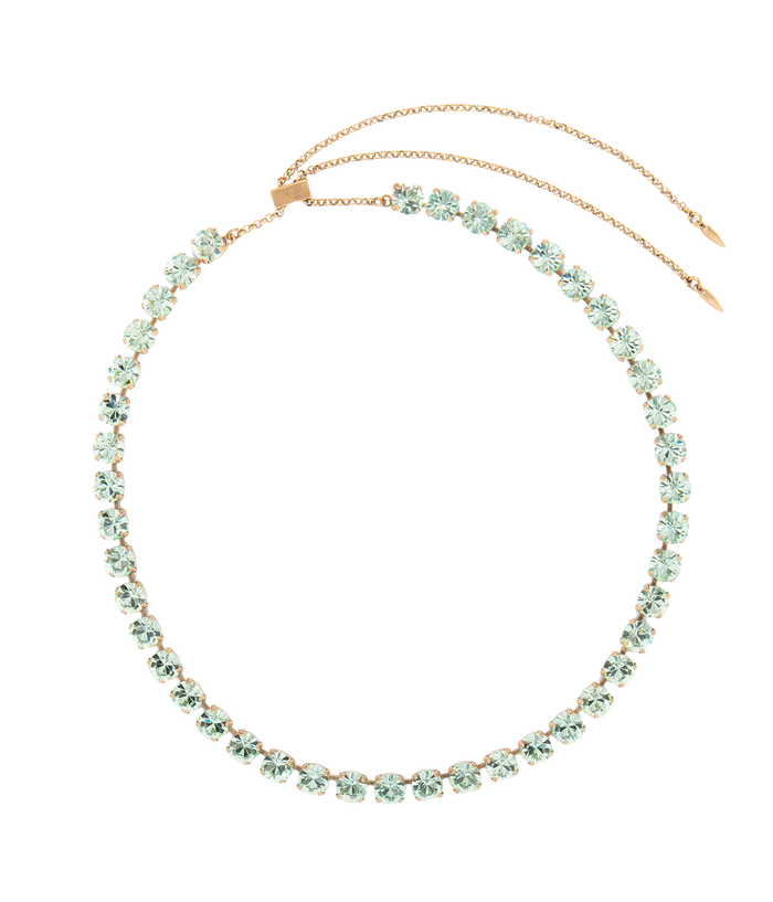 A classic piece for your jewelry box. The Arista Necklace is available in a multitude of colors, making it ideal for layering and gifting. Features hand-set glass stones and pronged settings in an 18K antiqued gold finish.