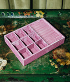 We created these beautifully hand-made silk velvet trays with thoughtful storage for our collectors in mind. Whether you choose to display on your vanity or stack in multiples in your closet, these luxurious trays add a feminine touch to your decor while keeping your jewelry collection organized.
