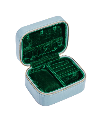 Material: Moiré fabric exterior, silk velvet interior, 24k shiny gold finish over brass zipper.