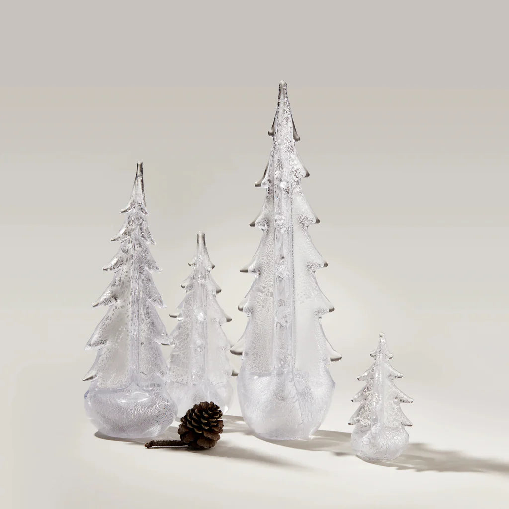 The Vermont Silver Leaf Evergreen brings new dimension to our iconic collection of trees. Handcrafted by infusing our molten glass with pure silver, the trees create the quiet beauty of winter or the brilliance of the holiday season. Start your collection or build on an existing one. Place on an LED light for greater brilliance. The SILVER LEAF EVERGREEN is available in several tree heights.