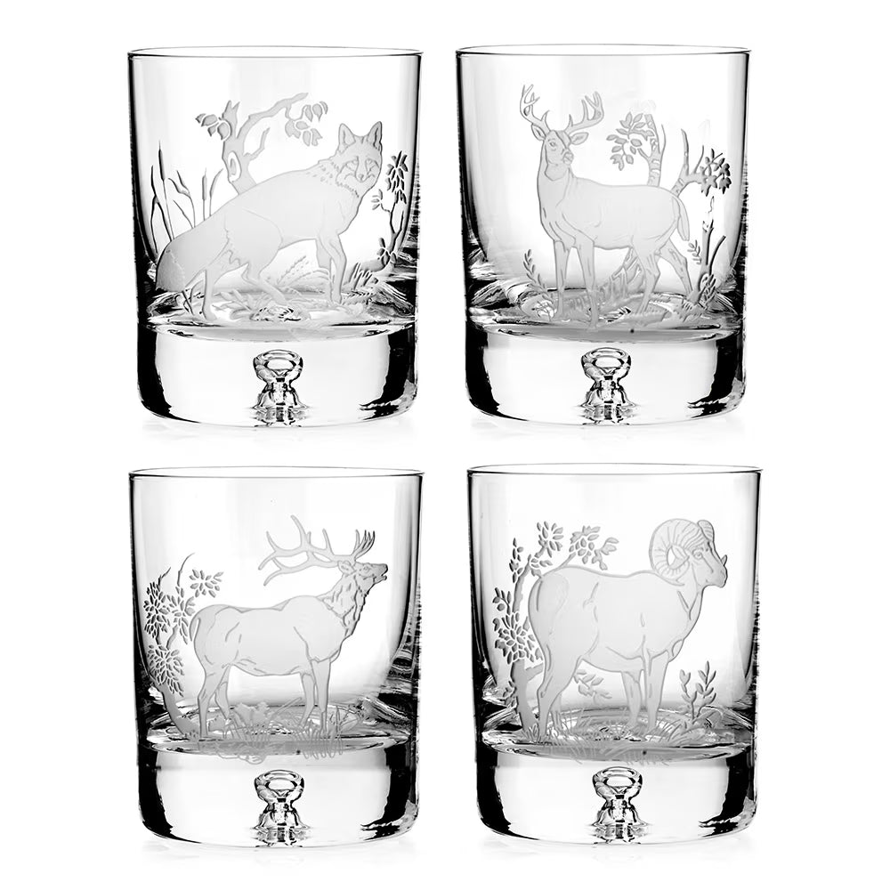 Julie Wear Set/4 DOF etched barware - American Wildlife Collection