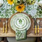 Create an inviting table with our hand-painted ceramic Pomegranate Crest Green Dinner Plates. An exclusive design from Pomegranate's founder and creative director, Angela Beck, each plate showcases a beautifully detailed pomegranate crest at the center, complemented by lush green patterns around the edges. The hand-painted design adds a layer of artistry and elegance to your meals, whether you're serving a cozy family dinner or hosting a special event. Made to mix and match interchangeably with our Ruffled Ceramic Dinnerware collection or pair together with the Pomegranate Crest Green Salad Plates and Appetizer plates, as a full set.