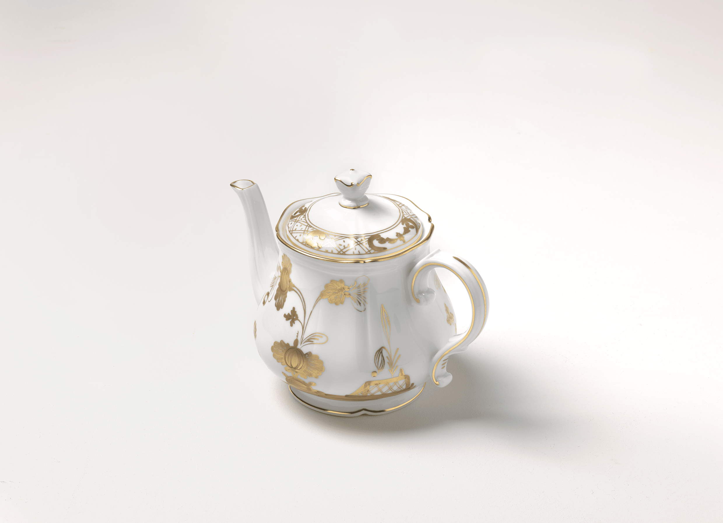 Porcelain teapot with Aurum decoration in pure gold. Oriente Italiano Gold Collection.