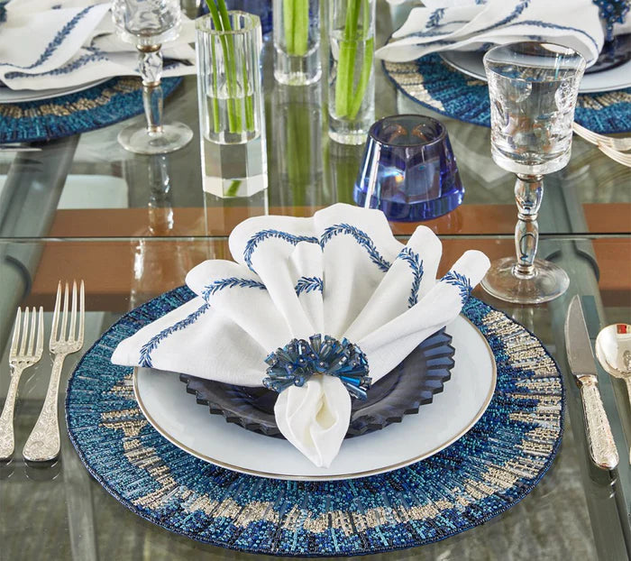 Kim Seybert INDOCHINE WHITE & BLUE COCKTAIL NAPKINS - SET OF 6