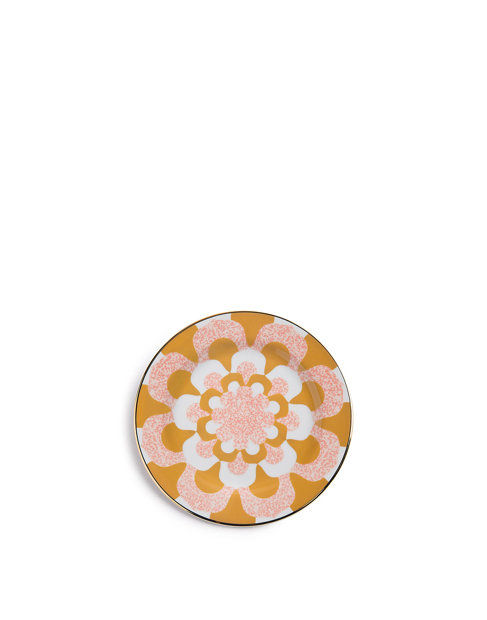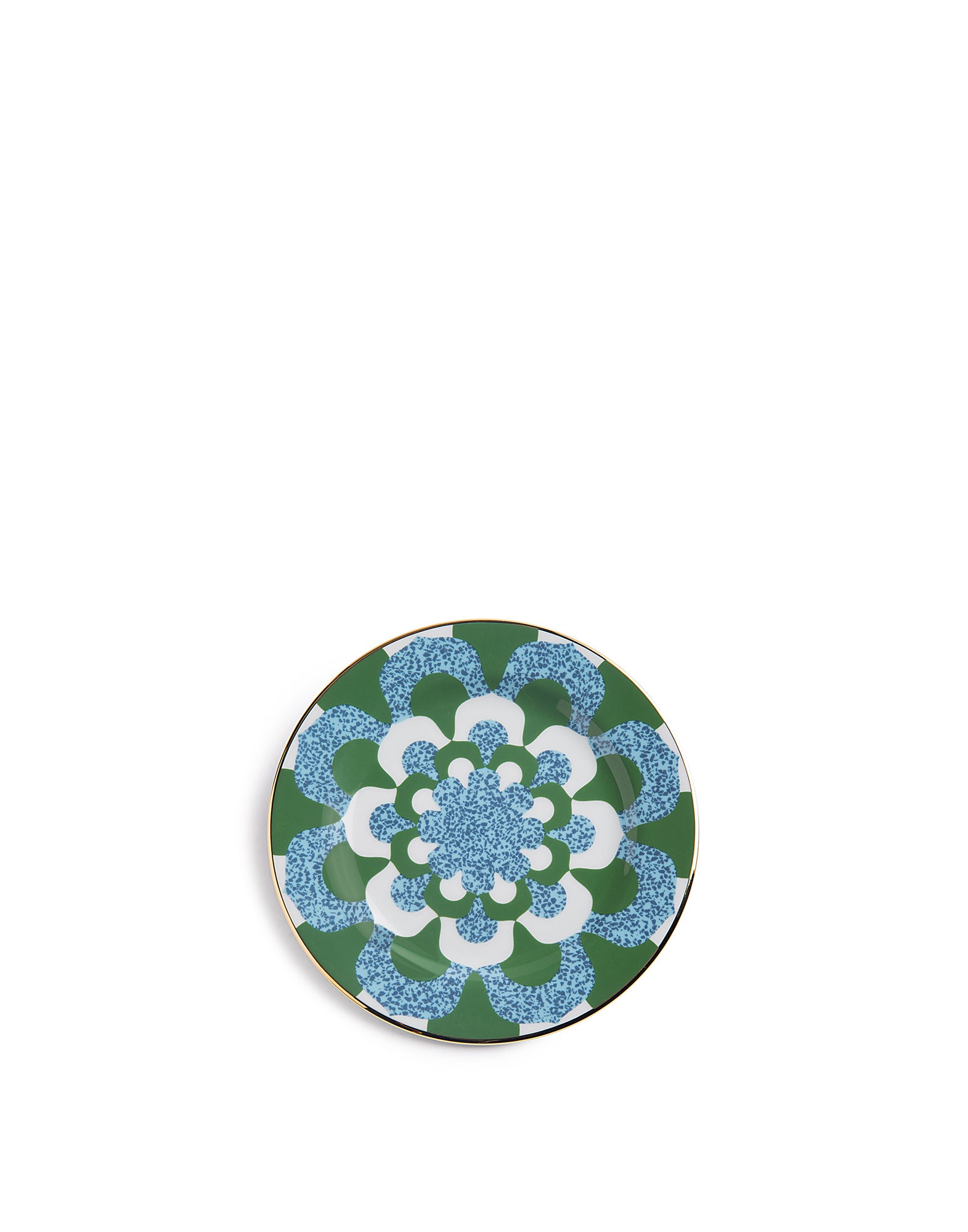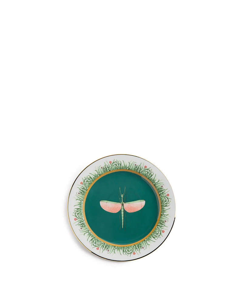 Made in collaboration with renowned Italian porcelain artisans Ancap, the LA DOUBLEJ Dessert Plates are crafted from exquisite fine porcelain and adorned with hand-painted gold trim for a luxurious finish. Each plate showcases a unique vintage pattern from the distinctive Libellula print family, creating a vibrant and intentional clash of designs.