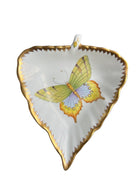 The Anna Weatherley Leaf Dish with Green, Yellow, and Purple Butterfly is a delicate celebration of nature and fine craftsmanship. Each dish is a limited edition piece, hand-painted in Anna Weatherley esteemed studio in Budapest, where a team of master artisans carries on the centuries-old tradition of botanical porcelain painting. The dish is formed in the shape of a soft, curling leaf and features a beautifully rendered butterfly in vibrant hues of green, yellow, and purple—an homage to the elegance of spring and the fleeting beauty of nature.