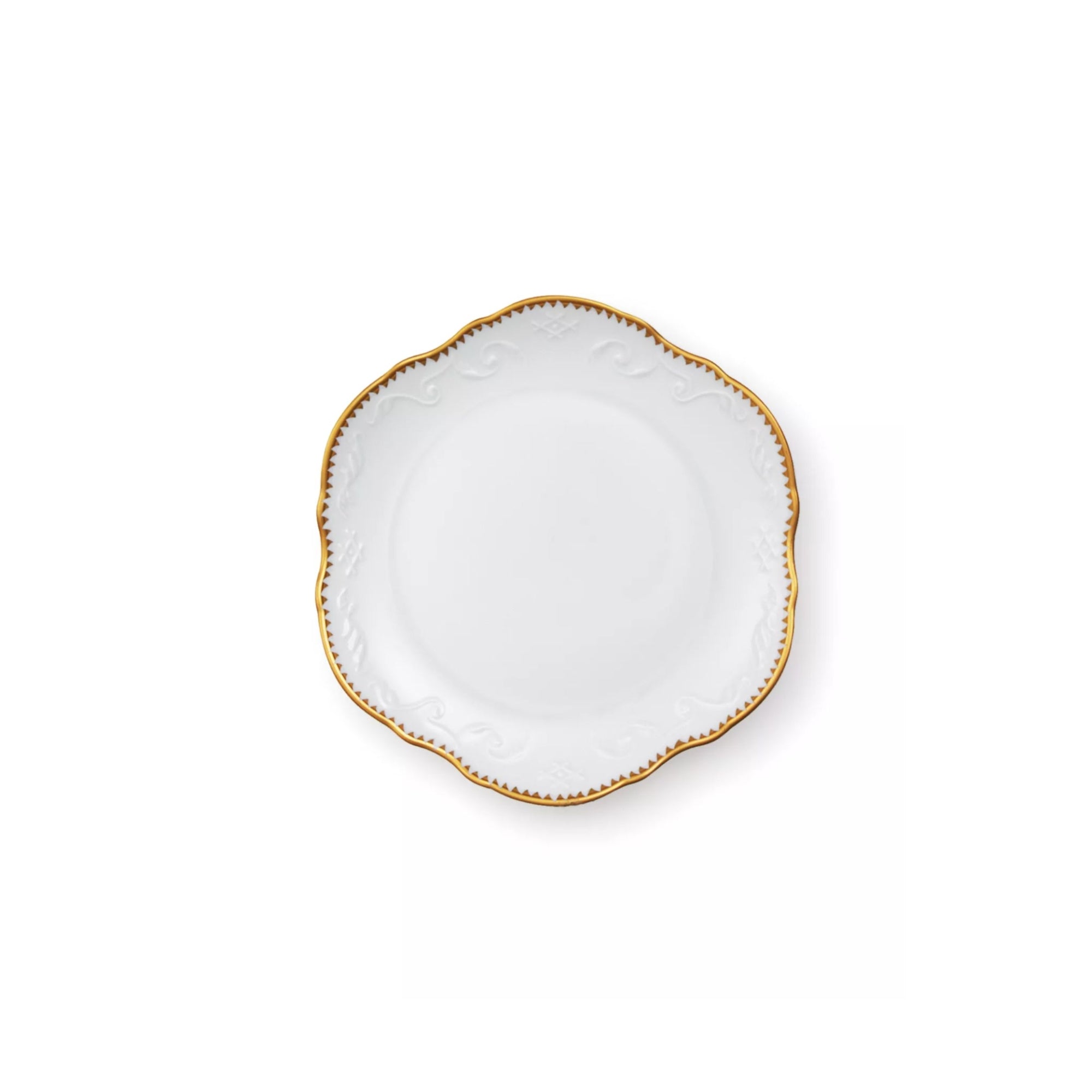 - Porcelain dinner plate with 22-karat gold details.