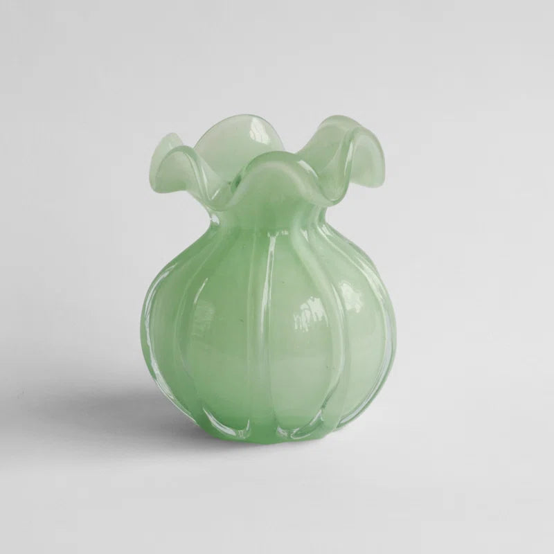 This vase is both decorative and functional, featuring a gently flared neck that can hold a single stem or a compact arrangement of flowers. Available in Clear, White, Jade, and Sky, each color offers a unique mood and aesthetic. Handmade with subtle variations in color and texture, it adds effortless charm to any shelf, windowsill, or tabletop.