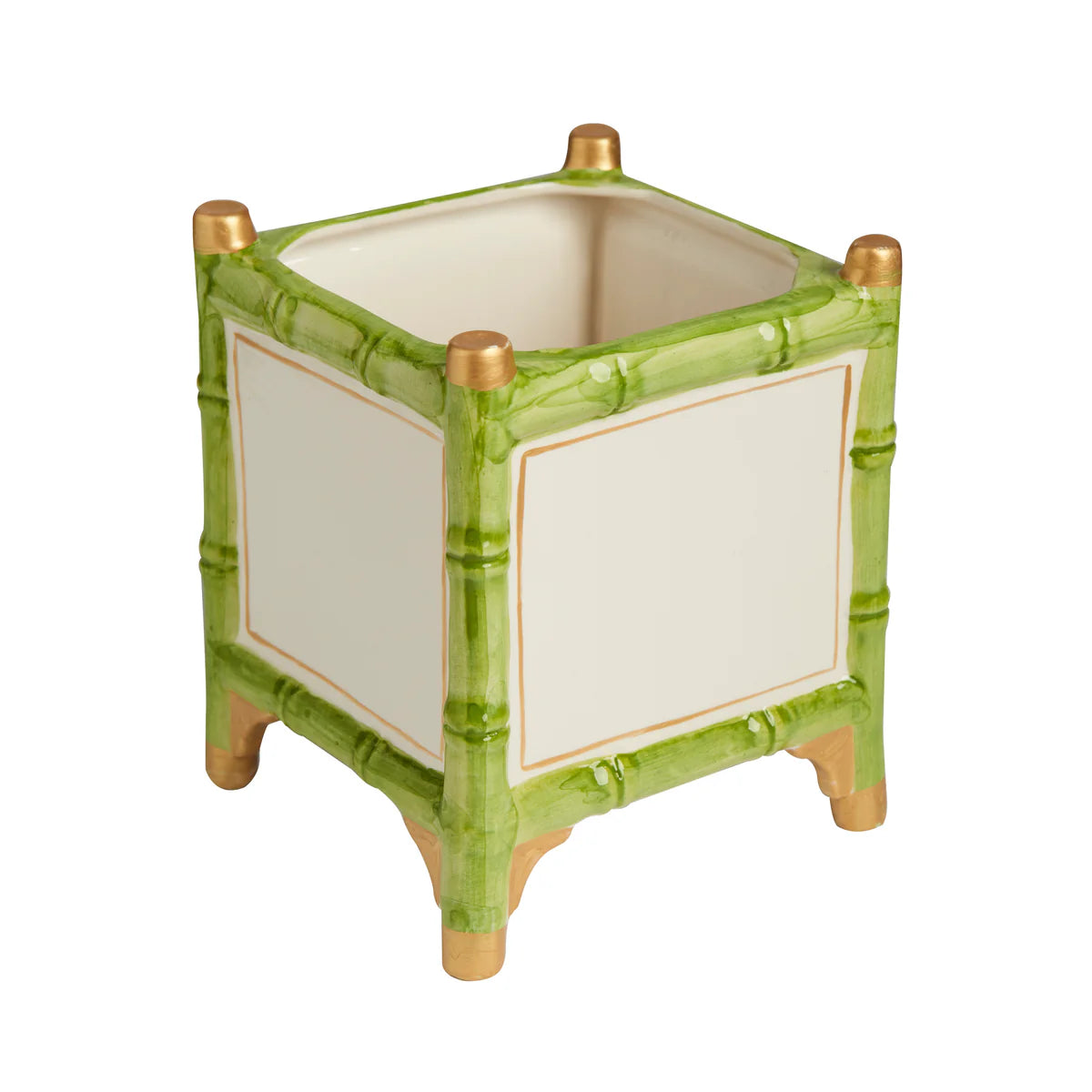 CACHEPOT LARGE BAMBOO GOLD/WHITE