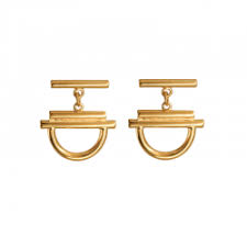 CXC Brass Gold Plated Drop Bar Circle Earrings