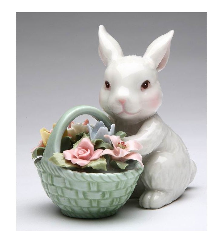 BUNNY WITH FLOWER BASKET FIGURINE