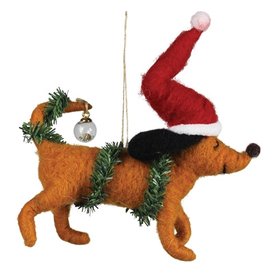 DASCHUND WITH GARLAND ORNAMENT, FELT