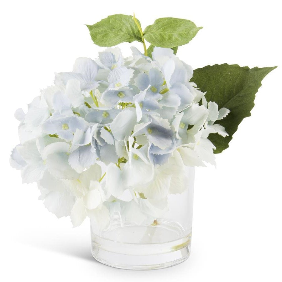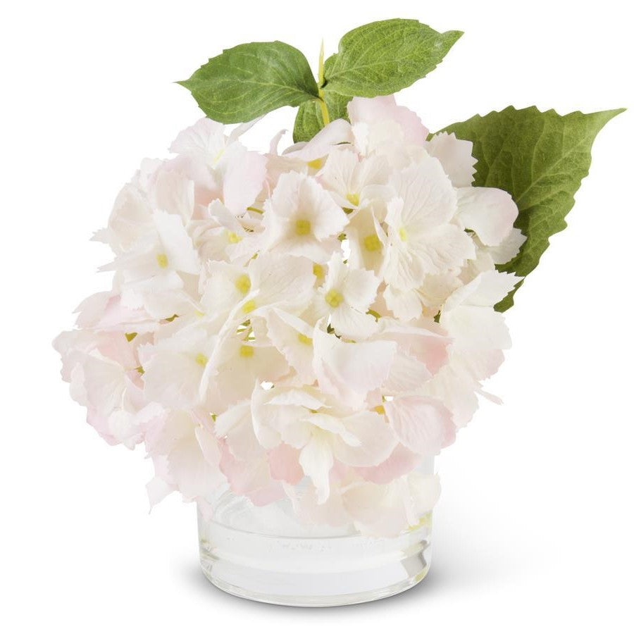 8 INCH REAL TOUCH HYDRANGEA IN GLASS VASE