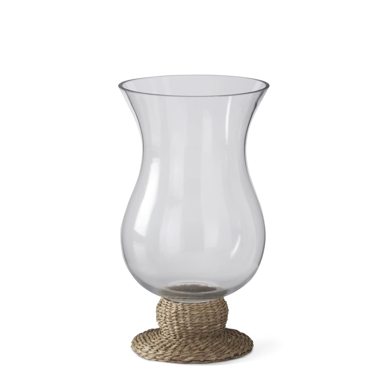 10' INCH GLASS HURRICANE WITH NATURAL GLASS WOVEN SLEEVE