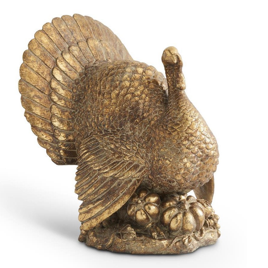 17 INCH RESIN ANTIQUE GOLD TURKEY