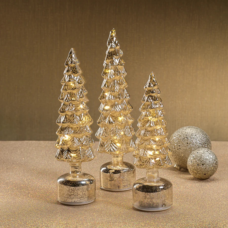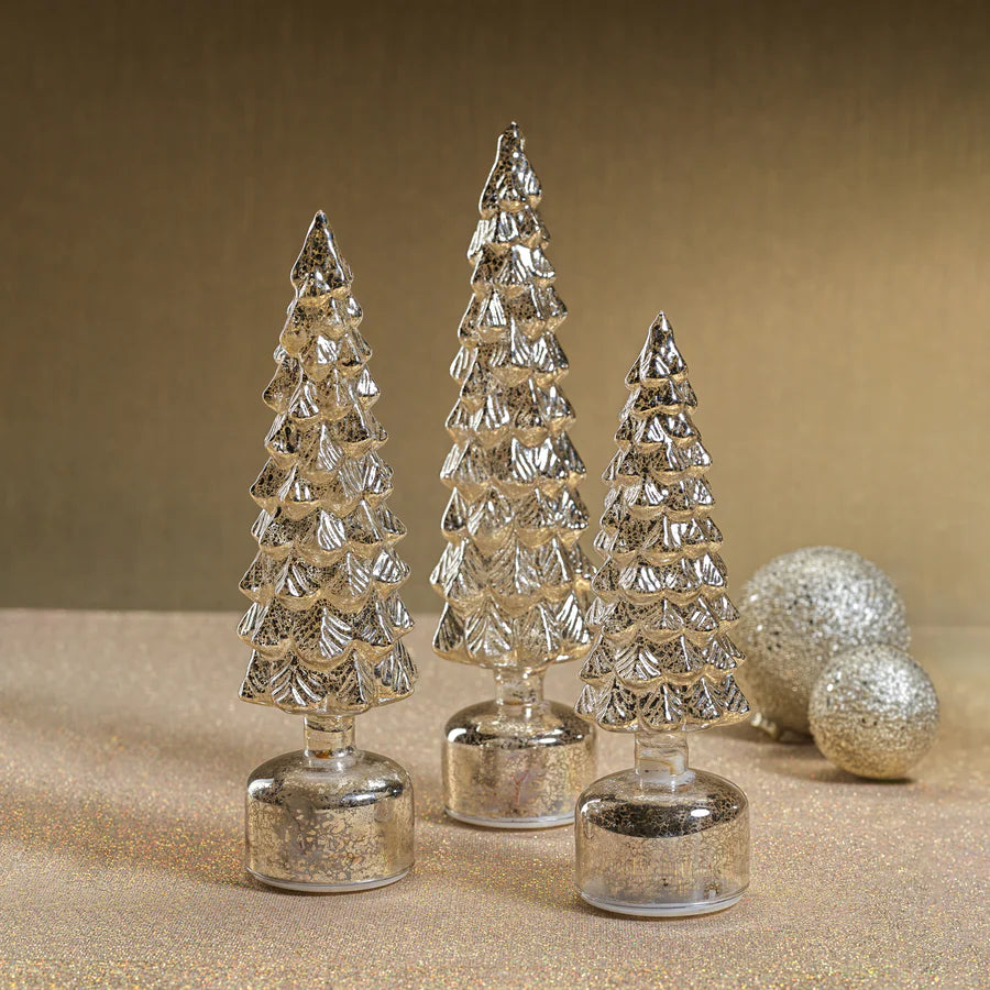 MOUNTAIN PINE ANTIQUE SILVER ROTATING LED TREE