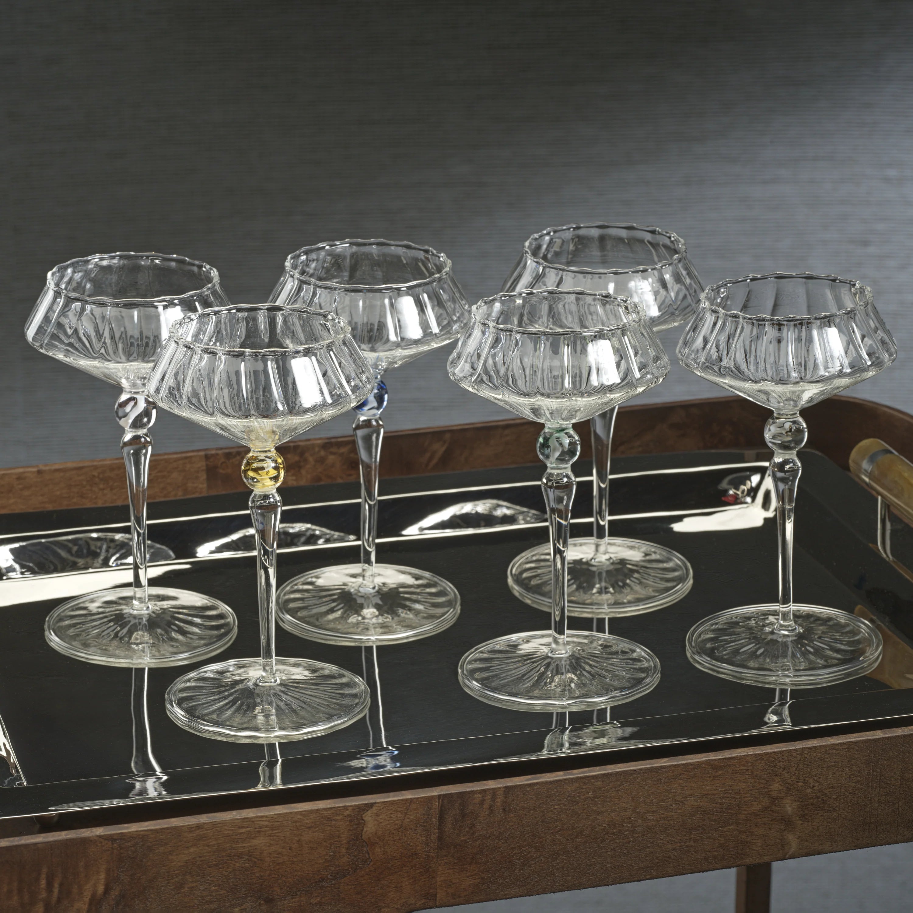 ONDINE FLUTED CORDIAL CLEAR COUPE WITH LIGHT AMBER ACCENT