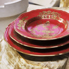 - Rubrum (Gold on Deep Red-Purple): The Rubrum finish exudes a sense of drama and mystique. The rich, deep red-purple background adorned with gold detailing adds a touch of extravagance to your table.