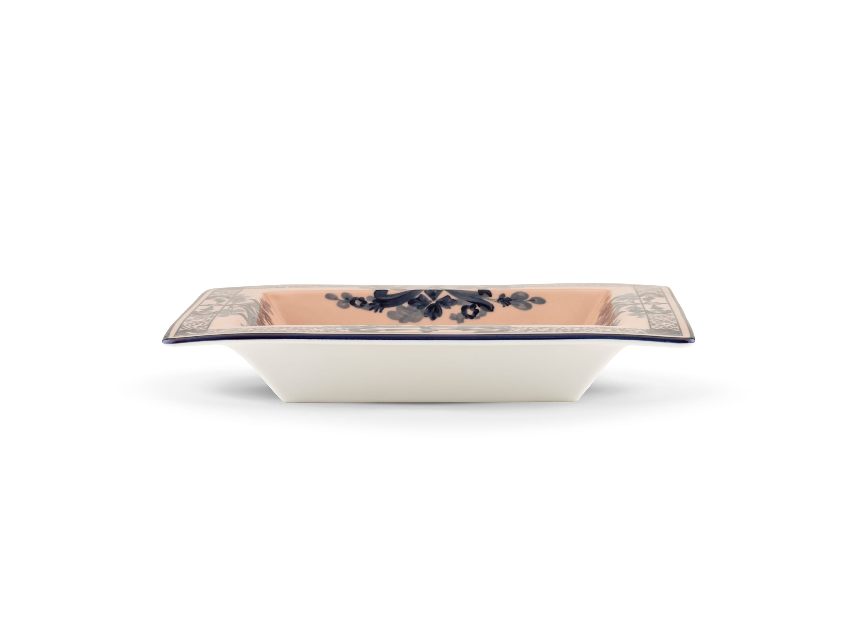 Whether gracing your entranceway, coffee table, or bedside, this porcelain tray is more than just a practical accessory; it's a statement of refined taste and sophistication. With its classic design and eye-catching aesthetic, it adds an aura of opulence to any setting. Indulge in the legacy of Richard Ginori and enrich your surroundings with the timeless allure of the Ginori 1735 Rectangular Vide Poche Oriente Italiano – where the beauty of nature meets the artistry of Italian craftsmanship.