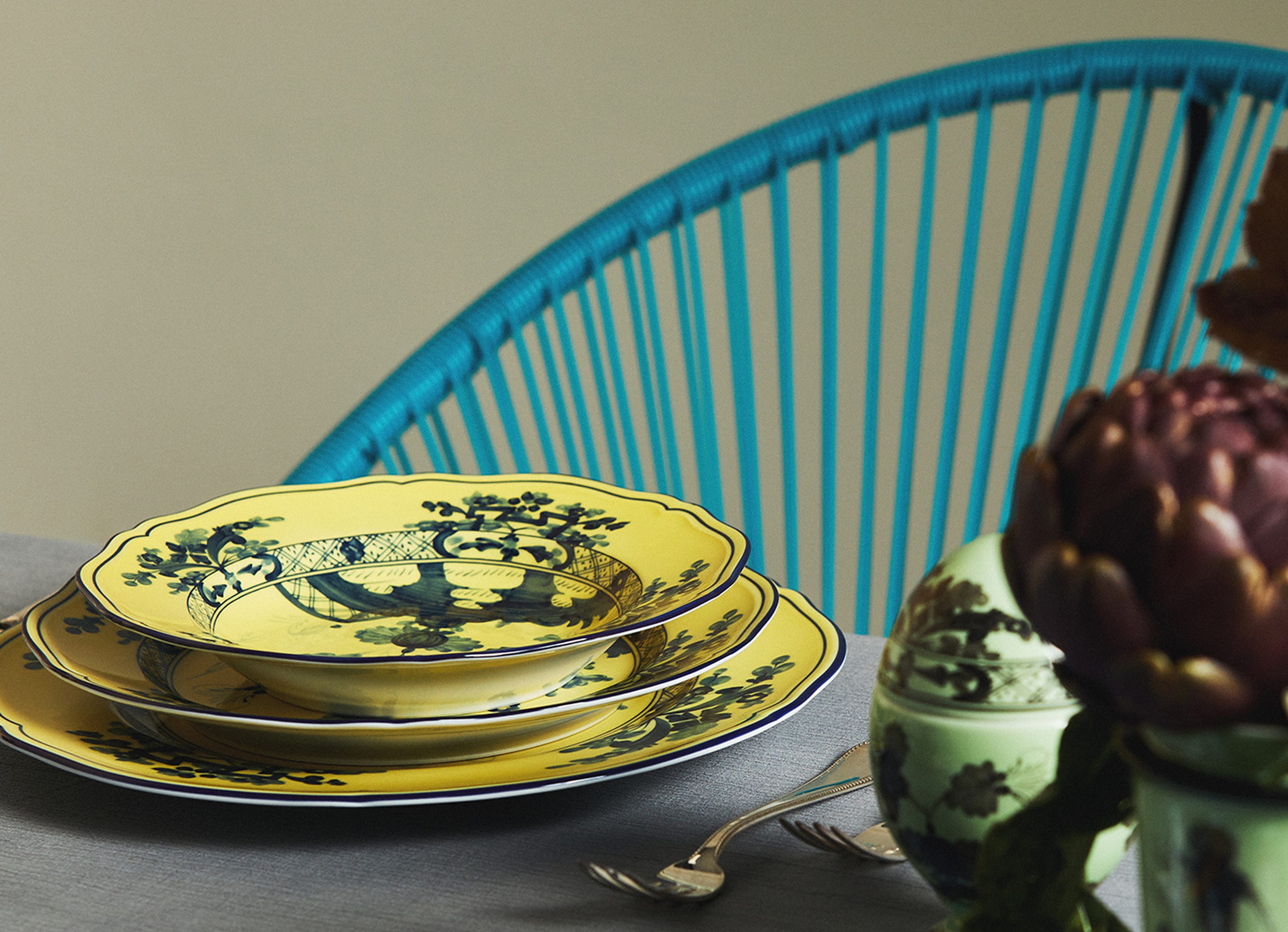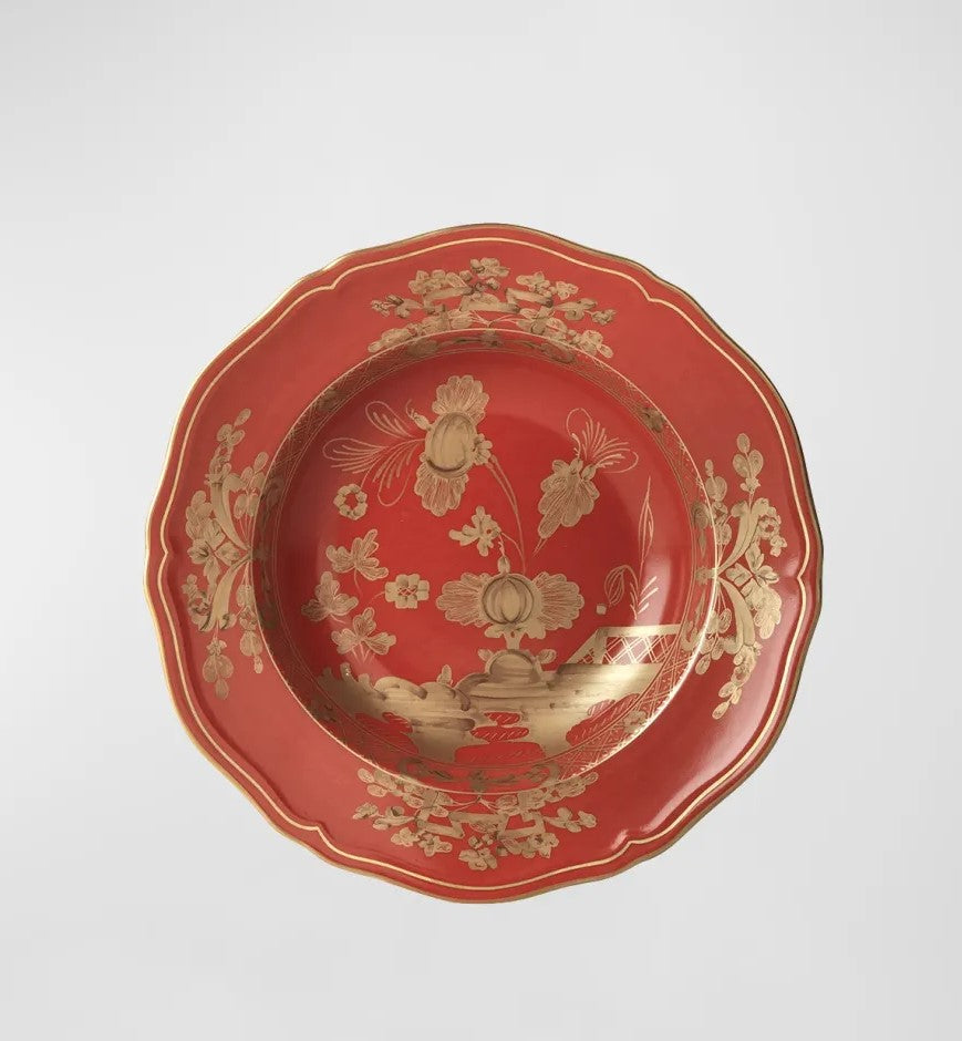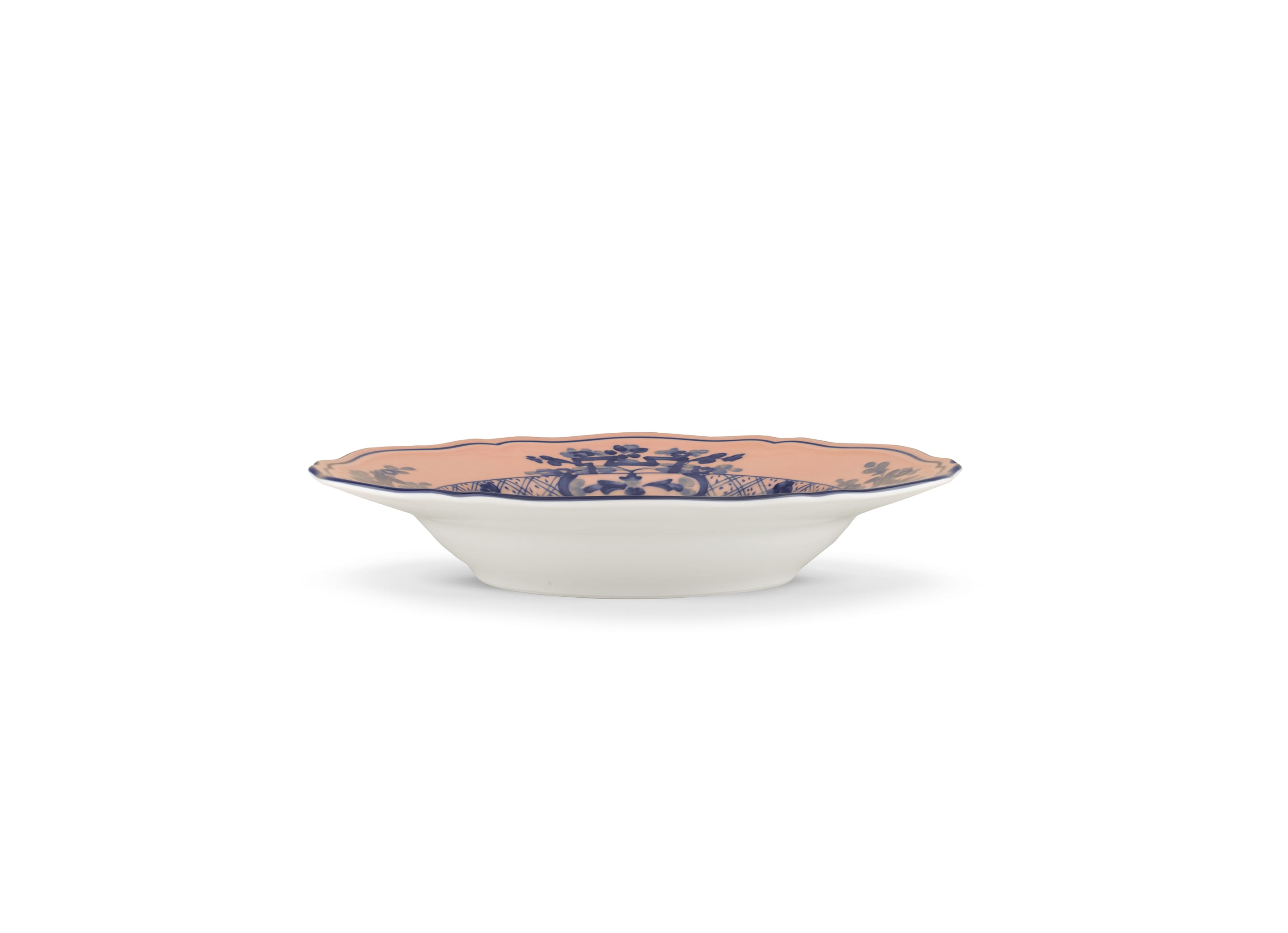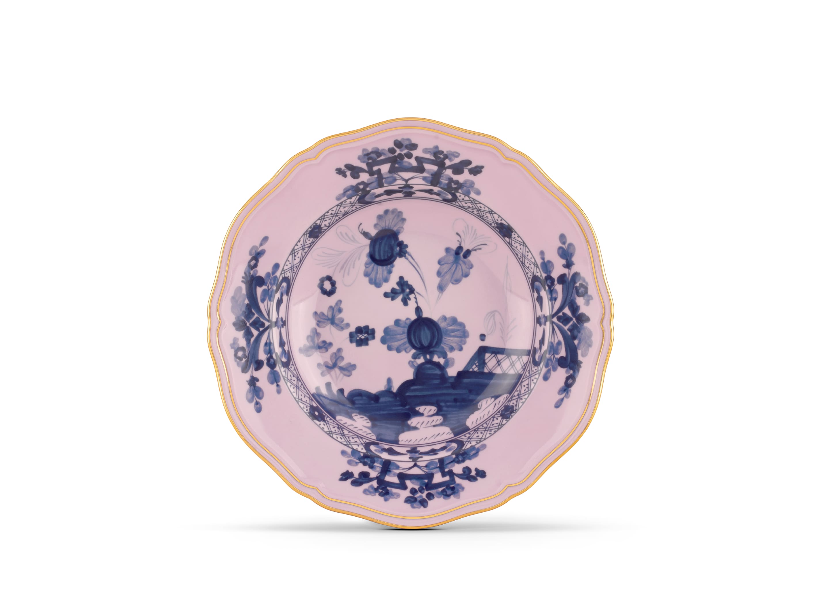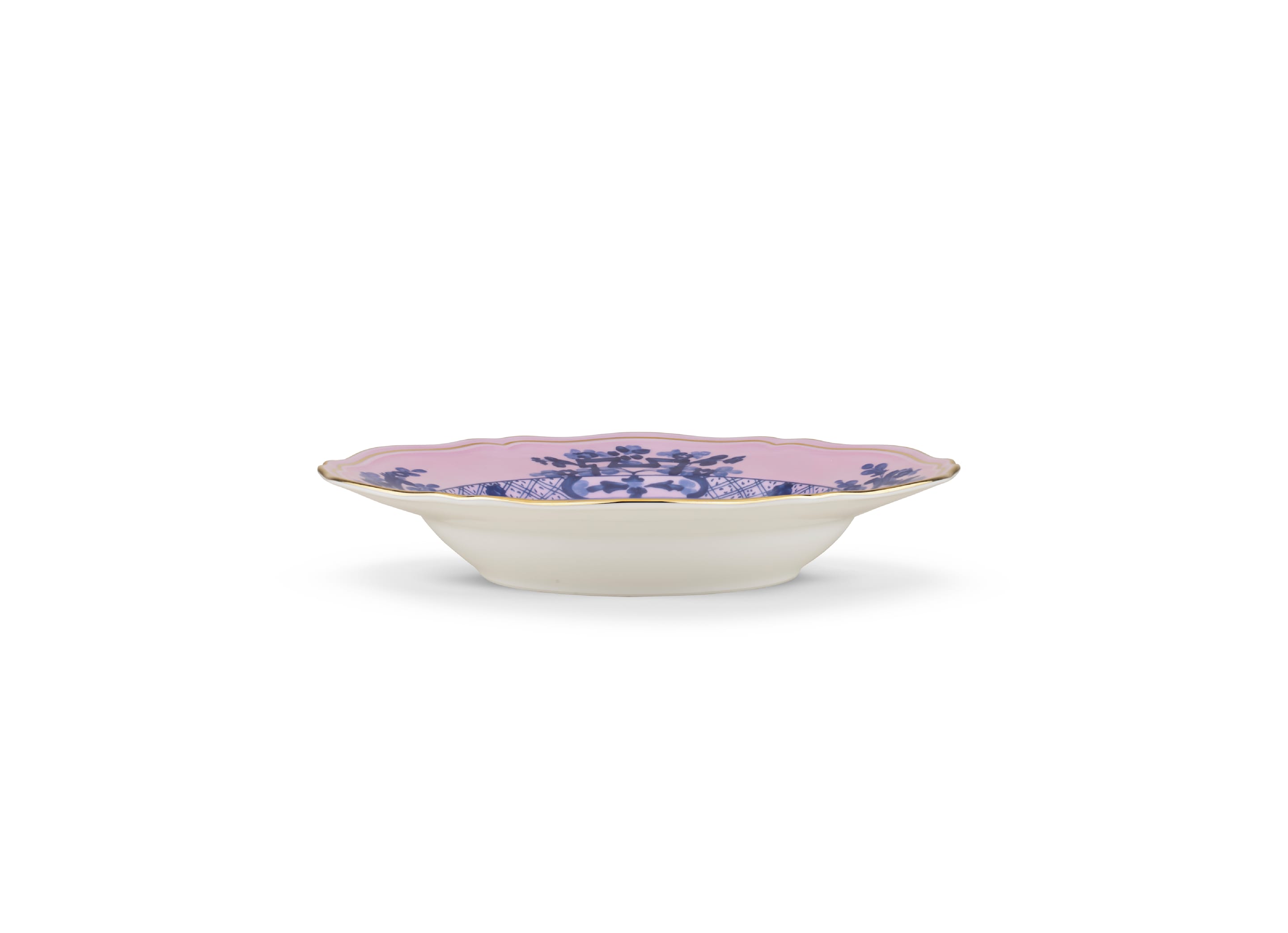 Our Orienta Italiano collection is the result of an extensive exploration of colors and patterns that have graced Italian ceramics and porcelain for centuries. We've pushed the boundaries of creativity to deliver a range of tableware that is both classic and contemporary. The Orienta Italiano Soup Plate is available in ten stunning color varieties to suit your personal style and preferences. Choose from Albus (Black on white), Azalea (Light Pink with gold rim), Bario (Light Green), Cipria (Powder), Citrino (Yellow), Iris (Turquoise with gold rim), Malachite (Green), Pervinca (Blue-violet with gold rim), Porpora (Purple with gold rim), and Vermiglio (Red-orange) to create a captivating dining experience.