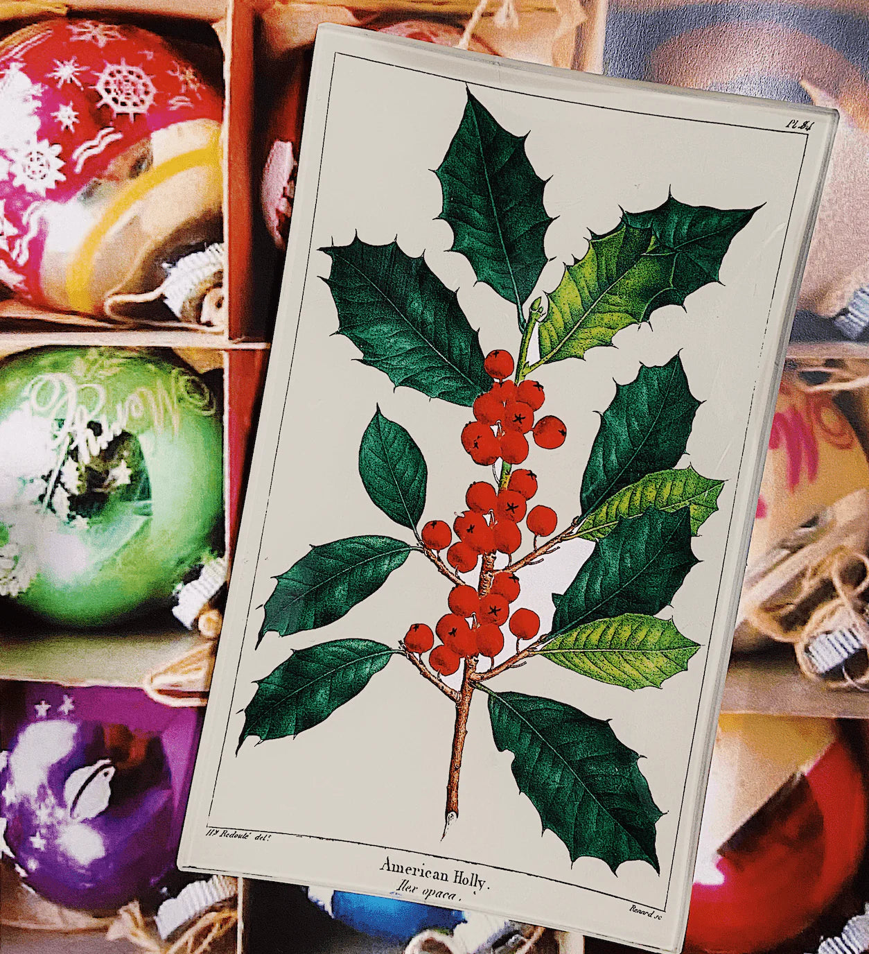 AMERICAN HOLLY GLASS DECOUPAGE TRAY