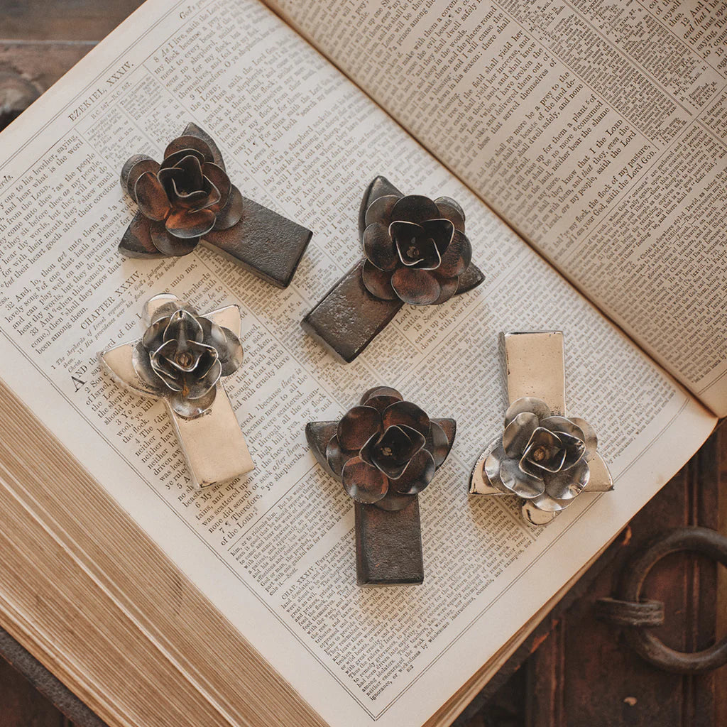 Add a touch of refined elegance to your collection with the Angelito Kingdom German Nickel-Plated Hand Rubbed Mini Iron Angel with Tiny Rose. Perfect as a decorative piece or a thoughtful gift.