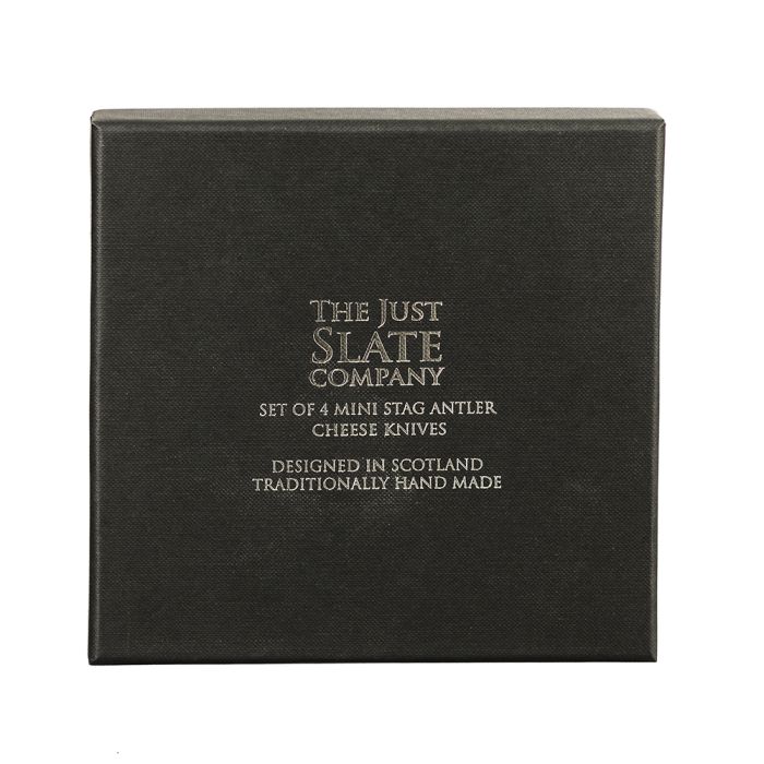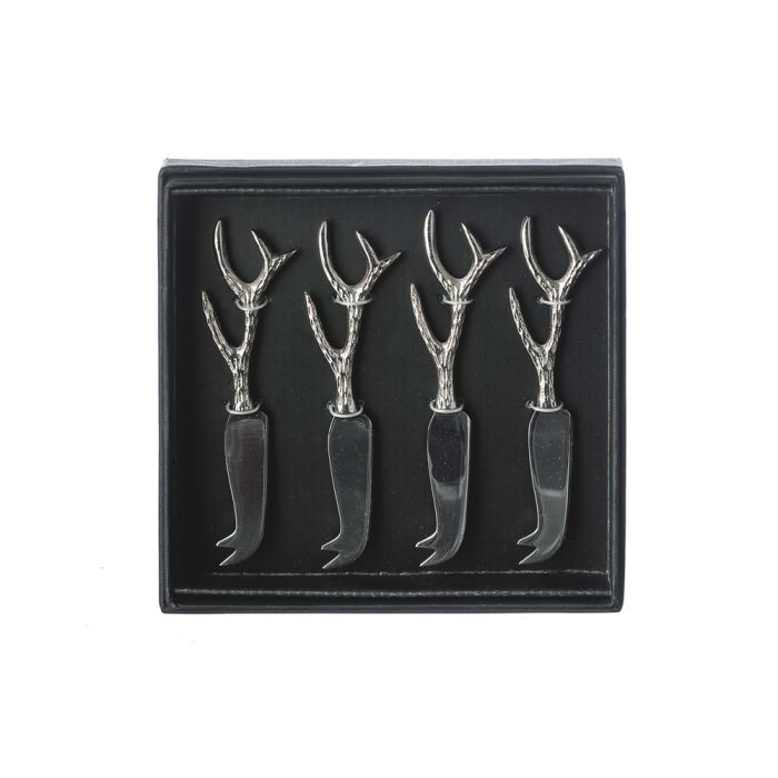 Enjoy a cheese board with friends in style with our stainless steel mini cheese knives with antler shaped handles. Whether you choose to present a generously-stocked cheese platter with a selection of knives, or give guests their own knives to serve themselves, these dinky cheese knives are just right for the job. Elevate your dining experience with our Anter Mini Cheese Knives-Antler. These beautifully designed cheese knives add a touch of sophistication to any cheese board moment. Perfect for entertaining guests or indulging in a solo cheese platter, our stainless steel knives with antler shaped handles make serving and savoring cheese a truly exquisite experience.