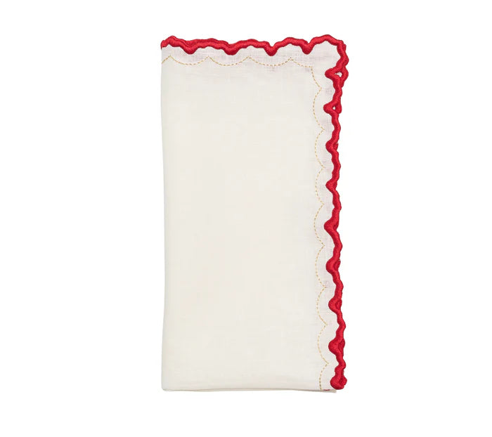 Characterized by a thick, embroidered geometric edge and delicate pick-stitching, the Arches linen napkin offers a contemporary update to the standard white linen napkin. Its versatile design seamlessly transitions from formal dining to more casual settings.