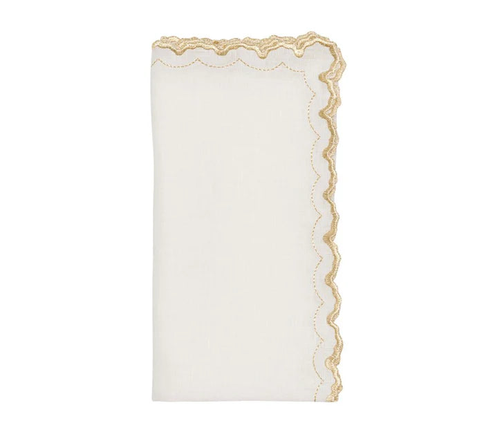 Characterized by a thick, embroidered geometric edge and delicate pick-stitching, the Arches linen napkin offers a contemporary update to the standard white linen napkin. Its versatile design seamlessly transitions from formal dining to more casual settings.