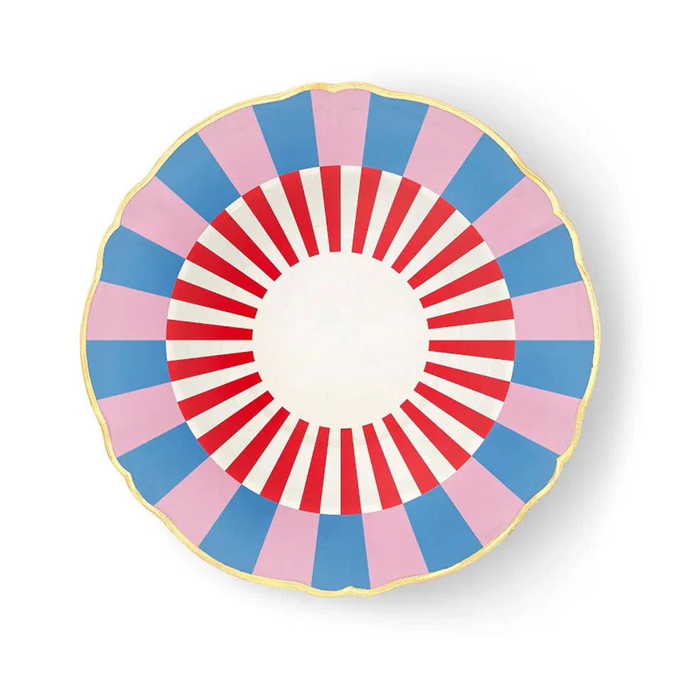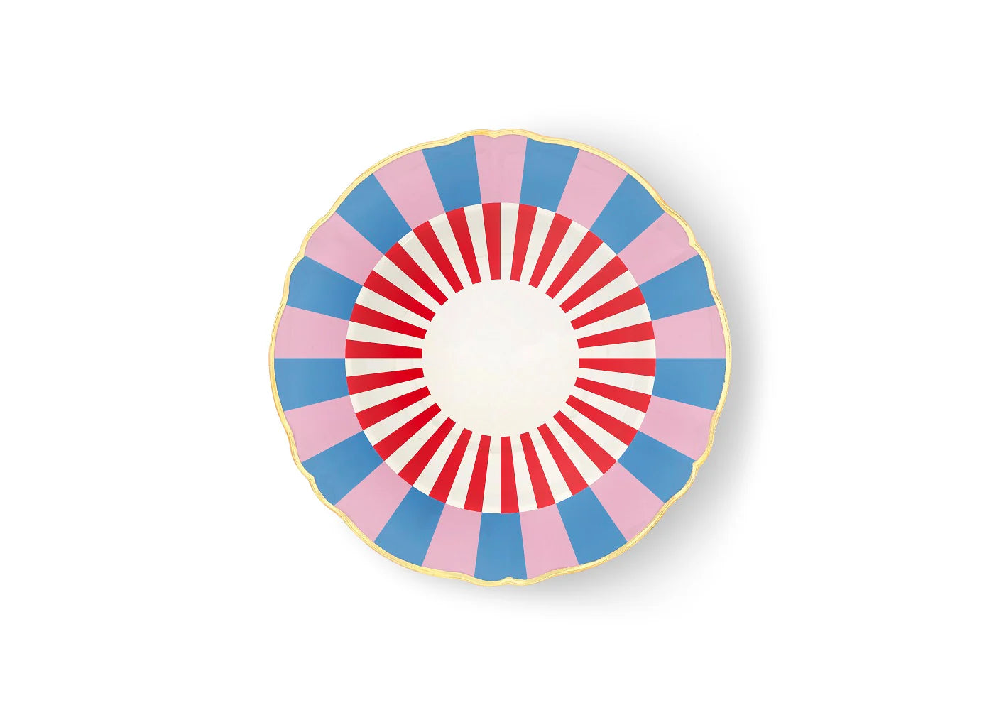 Expertly designed by the renowned Italian brand Bitossi Home, this porcelain deep plate features a stunning geometric pattern in blue-pink and red-white, highlighted by a sleek gold edge. Versatile and elegant, this plate is perfect for indulging in your favorite pasta dish, savoring a warm bowl of soup, or presenting a delicious salad in refined style. Whatever your preference, the Bitossi Home dessert plate is a must-have addition to your dining collection.