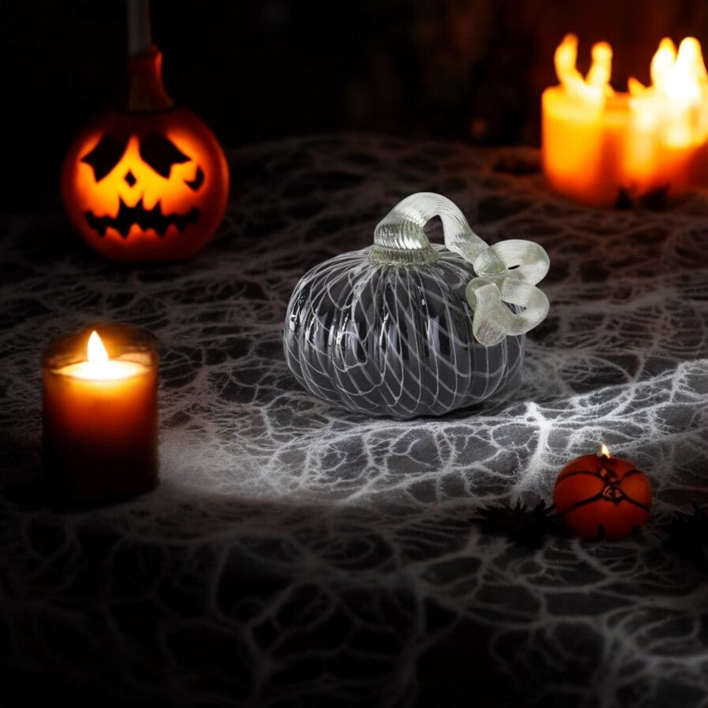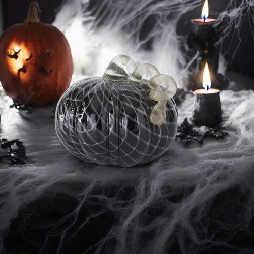 BLACK AND WHITE SWIRLS HANDBLOWN GLASS PUMPKIN