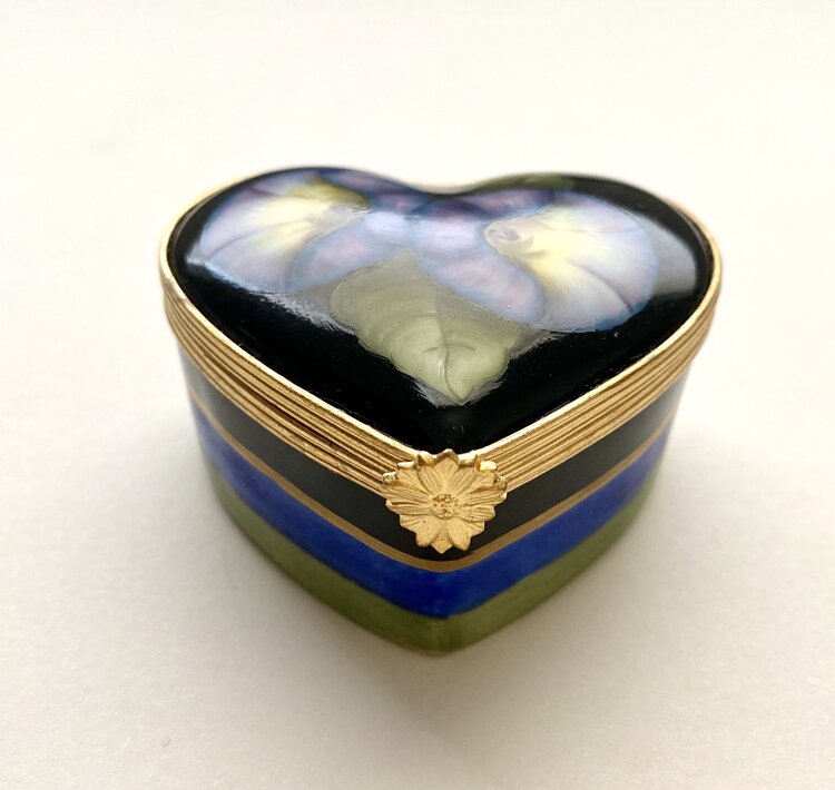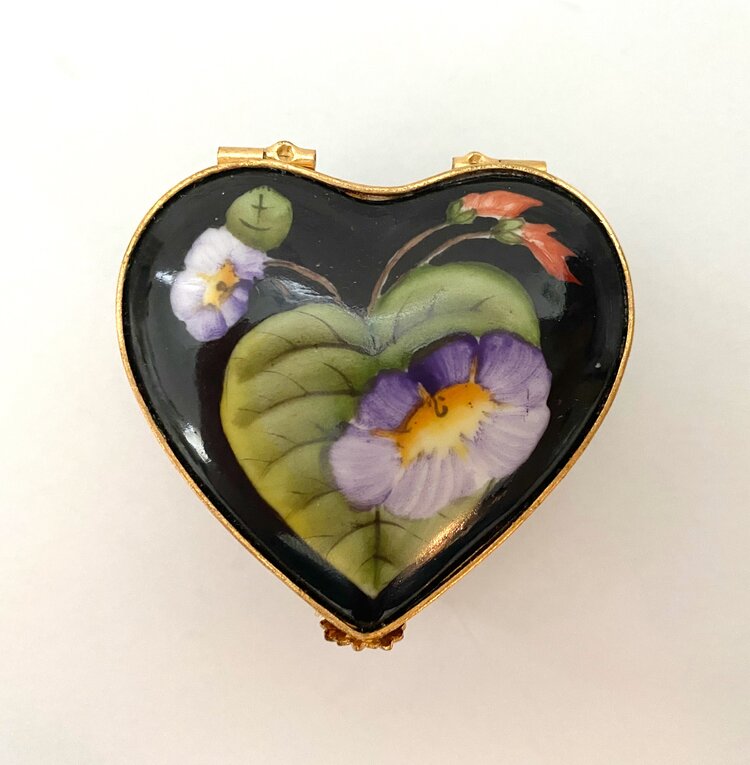 Anna Weatherley BLACK FLORAL HEART LIMOGES BOX
