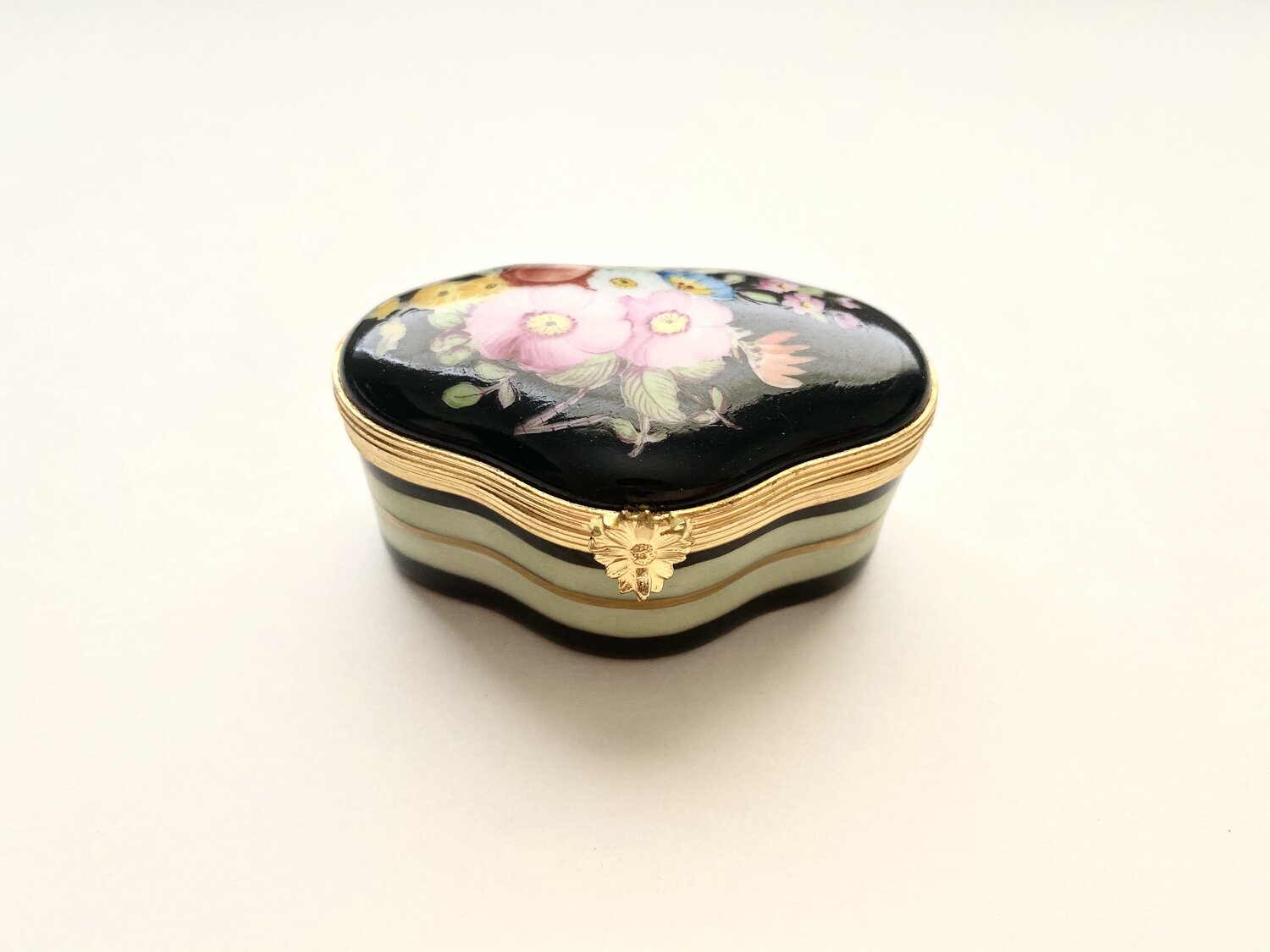 The Black Floral Limoges Box is more than a decorative object; it is a testament to the enduring appeal of hand-painted porcelain and the legacy of craftsmanship that Anna Weatherley continues to preserve. Whether presented as a meaningful gift, added to a fine porcelain collection, or cherished as a personal keepsake, this box carries with it a quiet elegance and heirloom quality that transcends trends.